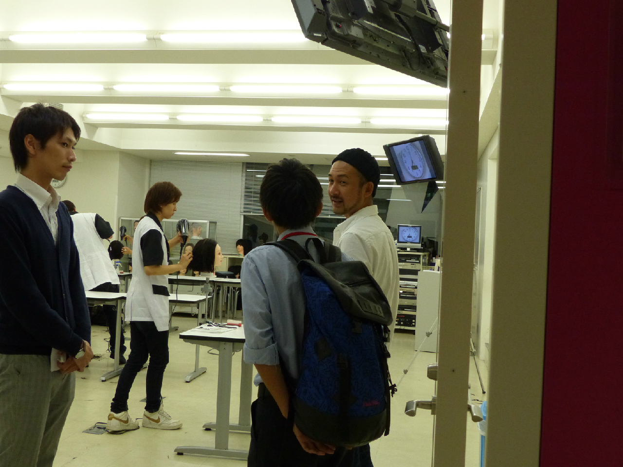 施設見学ではLIVE(夜間)授業でおなじみの美容室The English Rosesから講師の末平先生が来校者の方に授業内容を説明するなど、夜間ならではの光景ですね